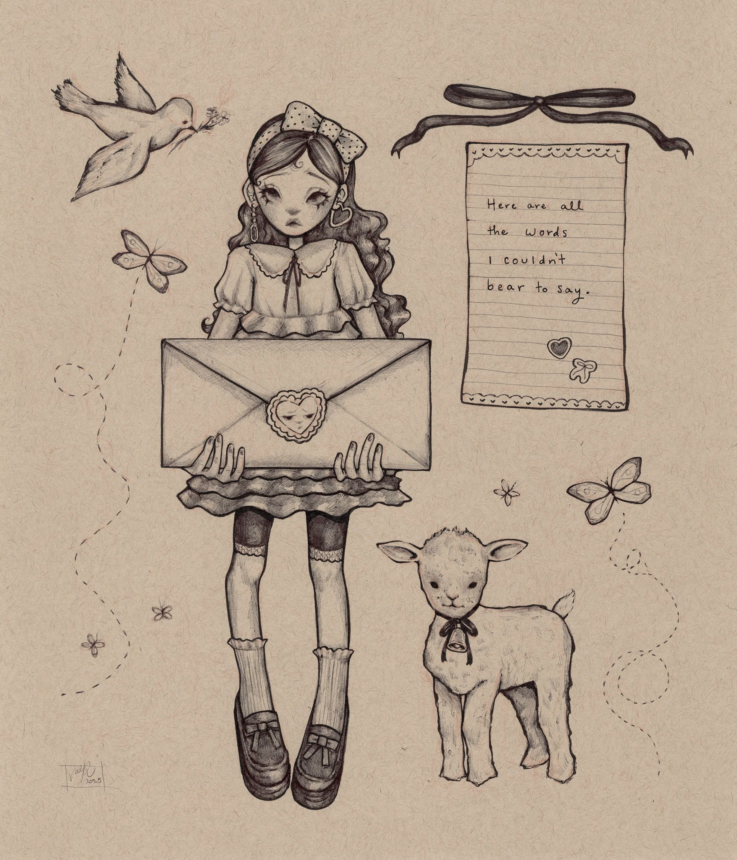 "a letter for you" - pen and ink on paper, featured at Angels Collective's Valentine's market and gallery on February 8th, 2025 Slide 1 Slide 1 (current slide)