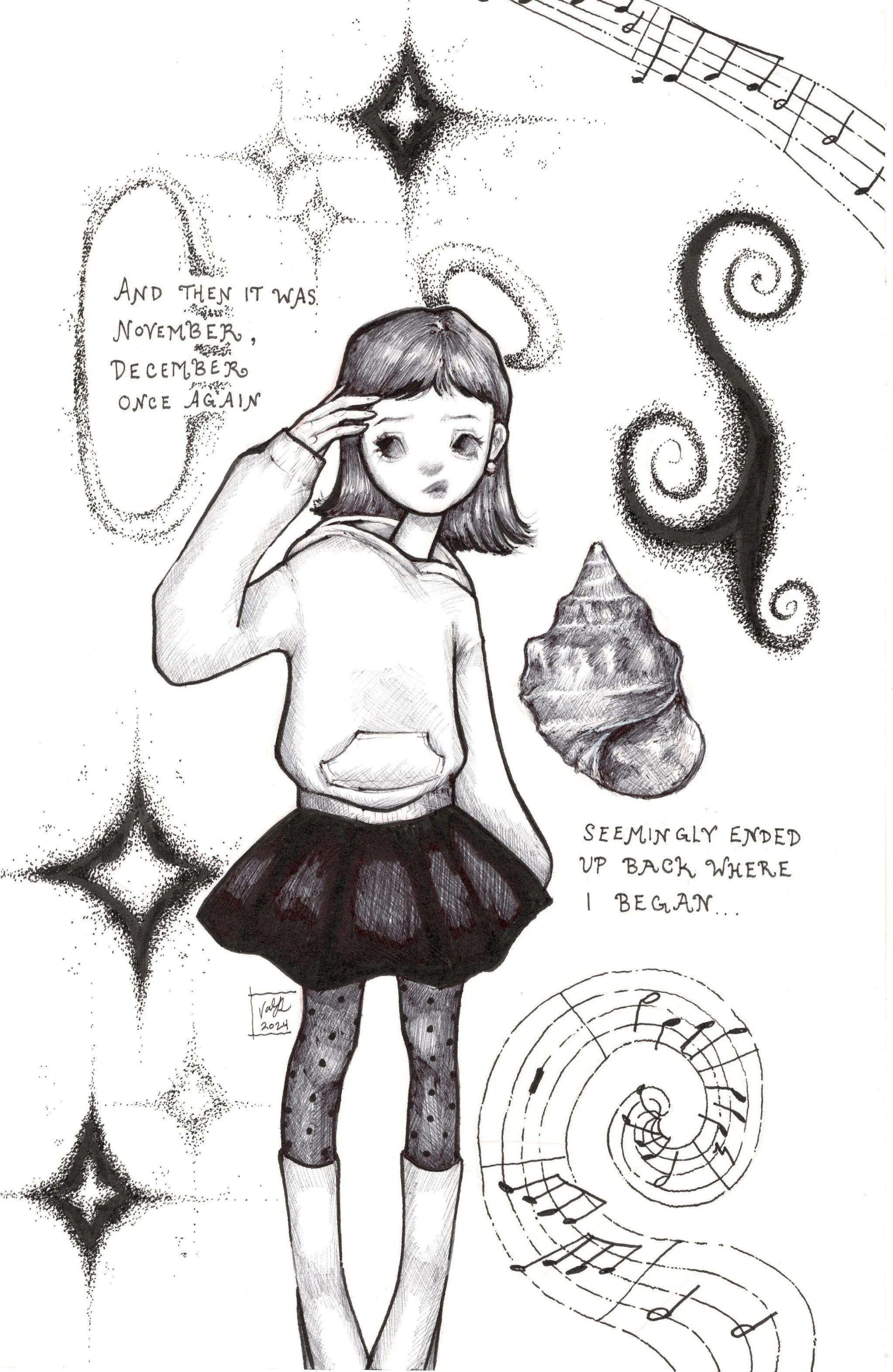 pen and ink on paper